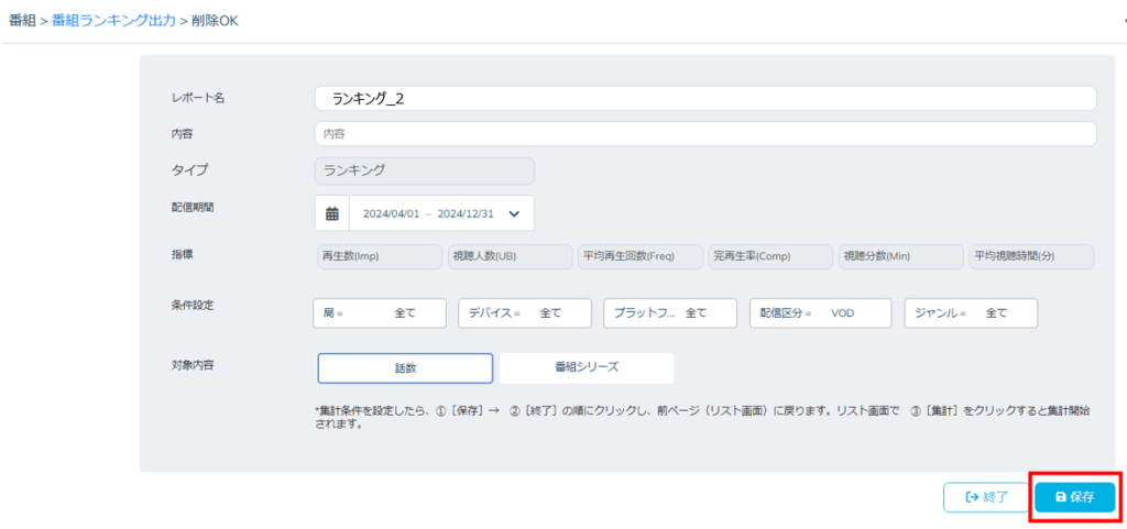 エラーが発生した場合には、改めて「保存」ボタンから更新していただきますと正常に集計が可能です。